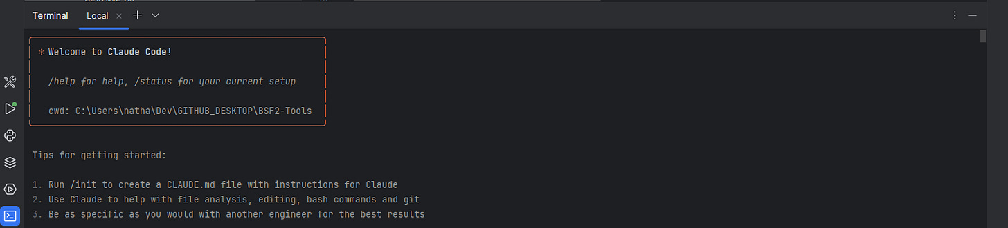 Point 1: Setting up Claude Code was surprisingly easy. I followed this doc, used the Git for Windows approach, and ran it straight from my PyCharm’s terminal—no plugin required. Piece of cake.